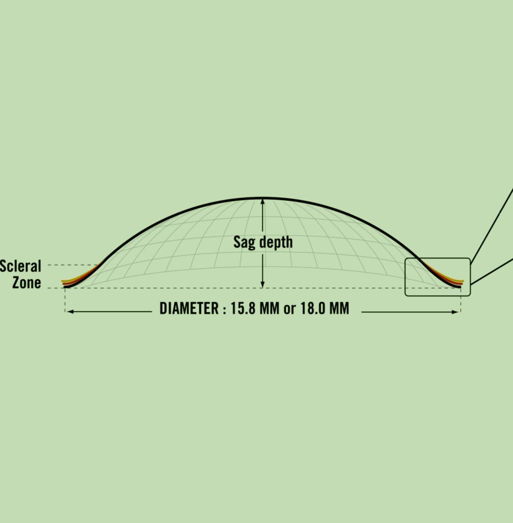 If excessive central touch and bubbles for in the scleral area, the lens is not properly aligned with the sclera but instead is rocking on the cornea. The wearer may also complain of edge awareness in this situation. To correct, increase the sag depth value.